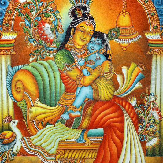 Lord Krishna in Yashodamma's Lap – Canvas Painting